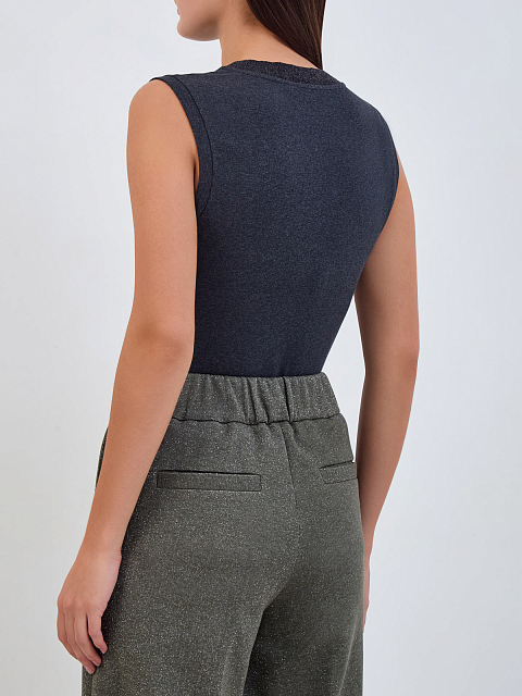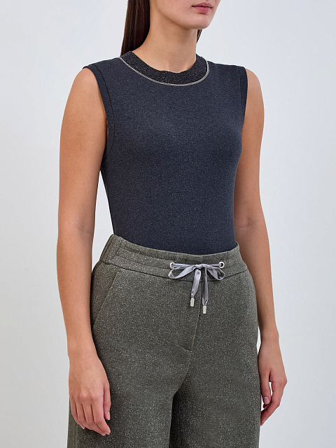 Облегающий топ из джерси с мерцающим воротом и цепочками