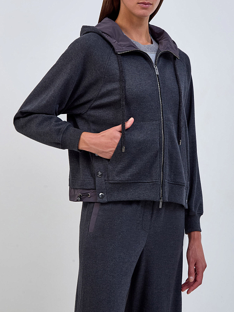 Женская комбинированная толстовка с капюшоном и разрезами на кнопках PESERICO купить за 82 320 руб.