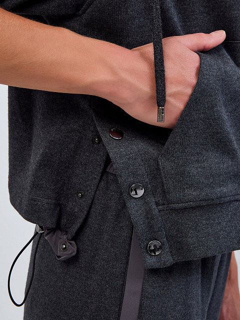 Комбинированная толстовка с капюшоном и разрезами на кнопках