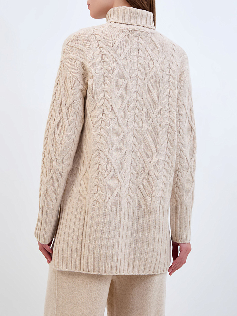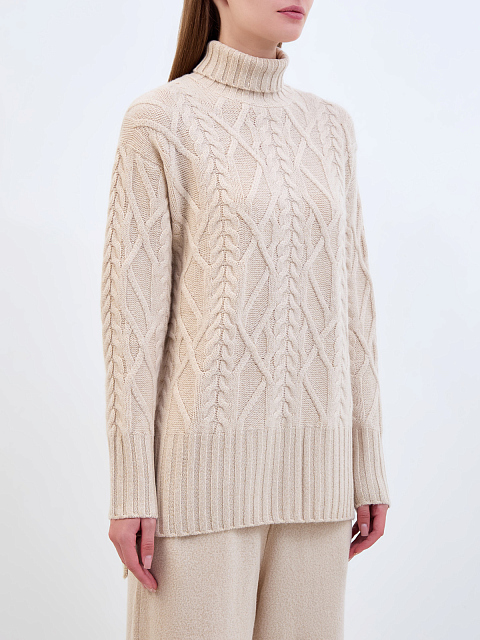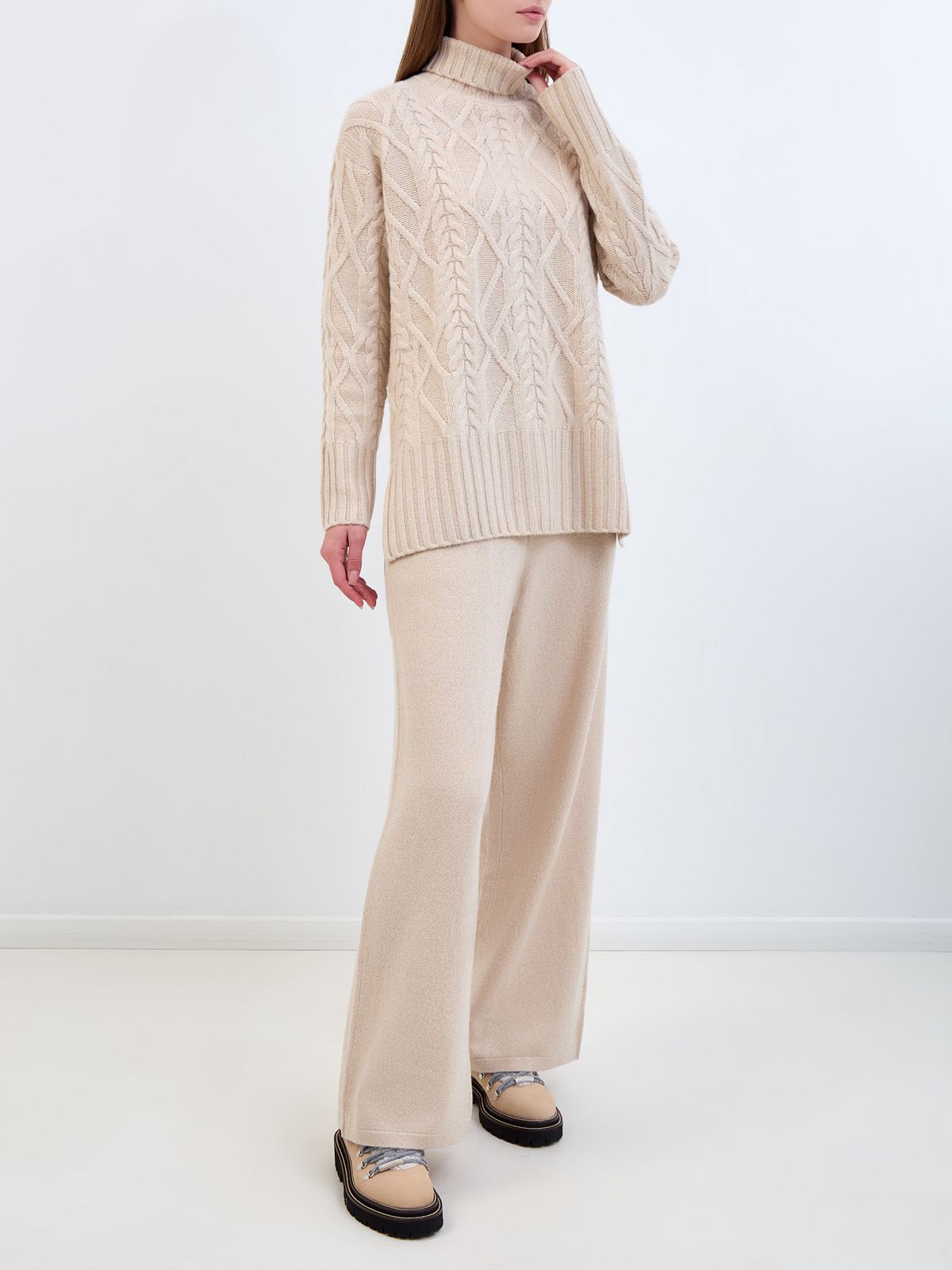 Кашемировый свитер с вязаным узором и золотистой нитью ламе