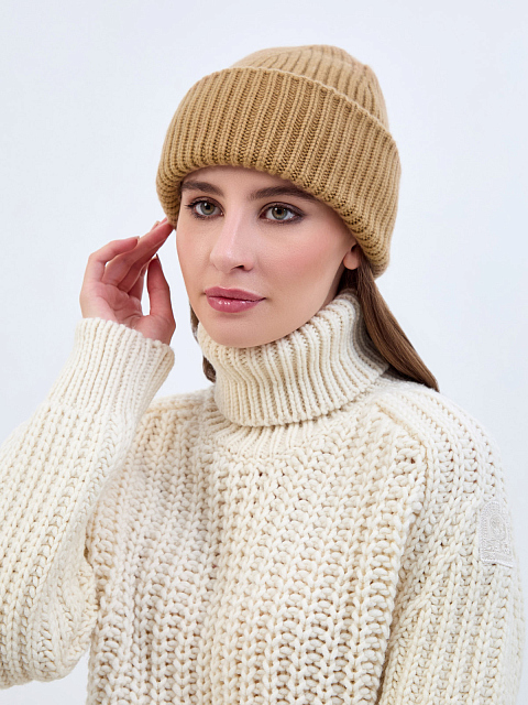 Кашемировая шапка эластичной вязки с широким отворотом