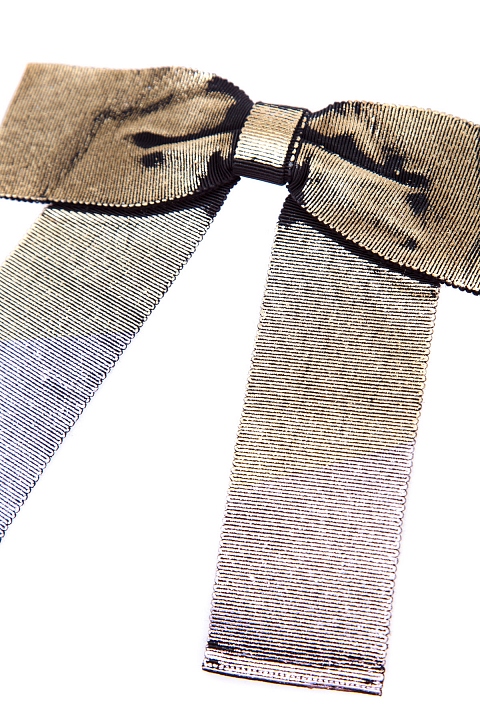 Брошь-бант из металлизированной ленты с градиентным эффектом