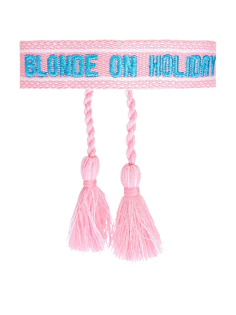 Браслет от MC2 Saint Barth. Аксессуар выполнен из хлопковой нити и за счет своей текстуры органично дополнит любой пляжный или повседневный аутфит. Изделие представлено в пастельном розовом оттенке, контрастный принт-леттеринг вышит в объемной технике. Ширина регулируется благодаря плетеным лентам с кисточками.