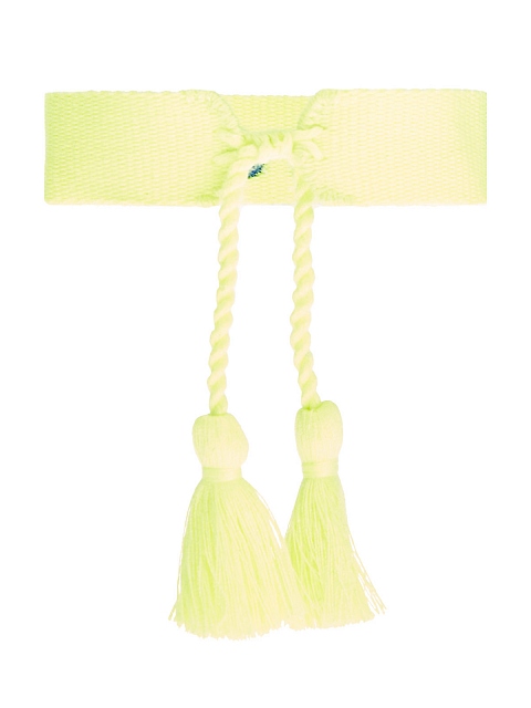 Плетеный браслет от MC2 Saint Barth. Аксессуар выполнен из хлопковой нити и за счет своей текстуры органично дополнит любой пляжный или повседневный аутфит. Изделие представлено в пастельном желтом оттенке, контрастный принт-леттеринг вышит в объемной технике. Регулирующие ширину завязки с кисточками вносят фирменный расслабленный акцент.