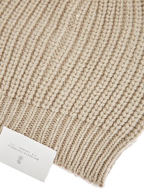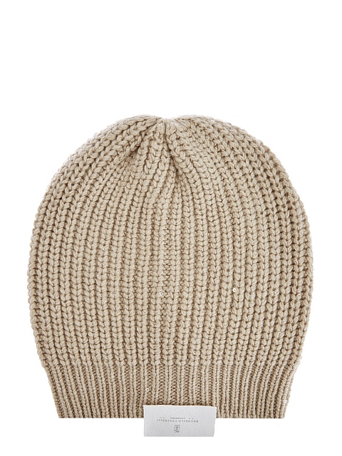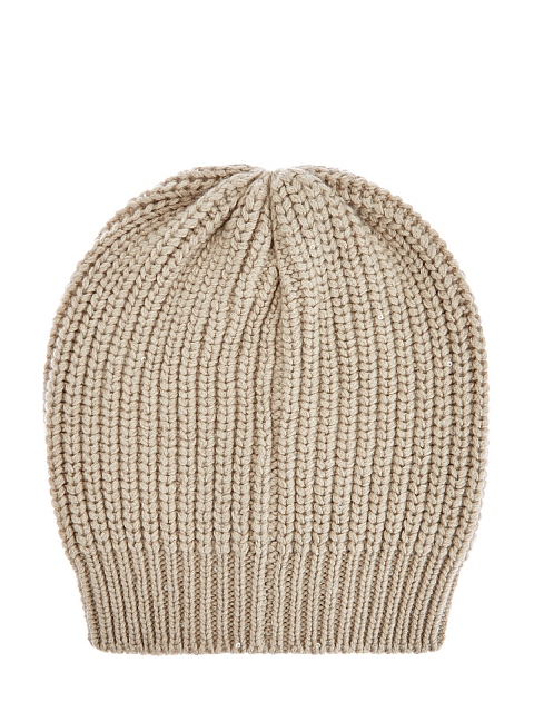 Минималистичная шапка в элегантном светло-бежевом оттенке от Brunello Cucinelli. Для создания модели была выбрана мягкая пряжа на основе благородного кашемира Piuma и шелка Diamante. За счет особого строения волокон аксессуар надежно сохраняет тепло и обеспечивает идеальную посадку. Миниатюрные пайетки, вшитые в нить вручную, придают головному убору мерцающий блеск. Сделано в Италии.