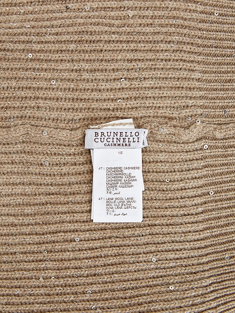 Элегантная шапка от Brunello Cucinelli выполнена в бежевом оттенке. Для создания модели была выбрана мягкая пряжа на основе шерсти и благородного кашемира Piuma. За счет особого строения волокон аксессуар надежно сохраняет тепло и обеспечивает идеальную посадку. Серебристая нить люрекса и миниатюрные пайетки придают головному убору мерцающий блеск. Сделано в Италии.