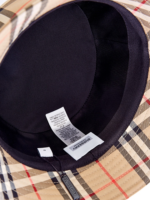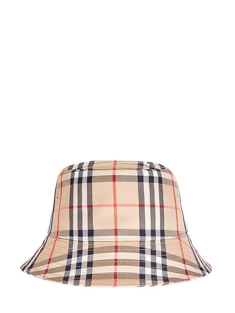 Стильная панама от Burberry создана из легкого технического хлопка, дышащий материал обеспечивает максимальный комфорт в летний сезон. Архивный принт в широкую клетку подчеркивает фирменный стиль бренда. Детали: простроченные швы, уплотненная тулья.