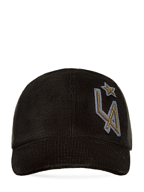 Бейсболка из хлопкового вельвета с золотистым патчем-аппликацией