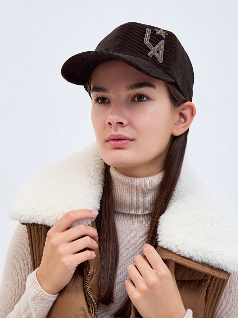 Стильная бейсболка от Lorena Antoniazzi выполнена в оттенке шоколада из хлопкового вельвета. Характерная ворсистая текстура дополнит образ фактурным акцентом. Аксессуар с плотным изогнутым козырьком и кожаным ремешком для индивидуальной регулировки по ширине. Завершающий штрих — аппликация в виде монограммы и фирменного символа Модного дома из золотистого бисера. Сделано в Италии.