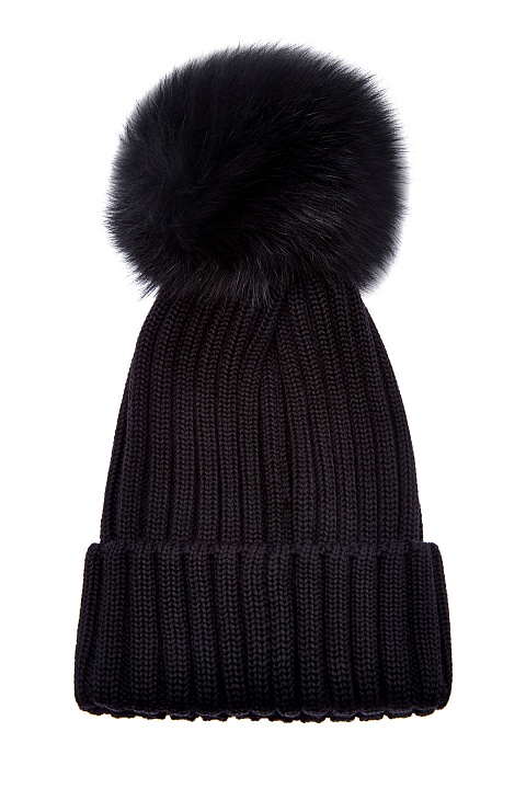 Шапка из пряжи Virgin с помпоном из меха лисы