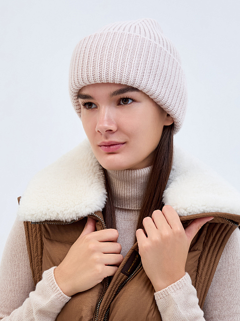 Стильная женская шапка в пудровом оттенке от Yves Salomon. Модель из мягкой пряжи на основе шерсти и кашемира станет идеальным завершением повседневных образов в холодное время года. Благодаря технике эластичной вязки и особому строению волокон аксессуар надежно сохраняет тепло и обеспечивает идеальную посадку. Широкий отворот дополнительно защищает от ветра.