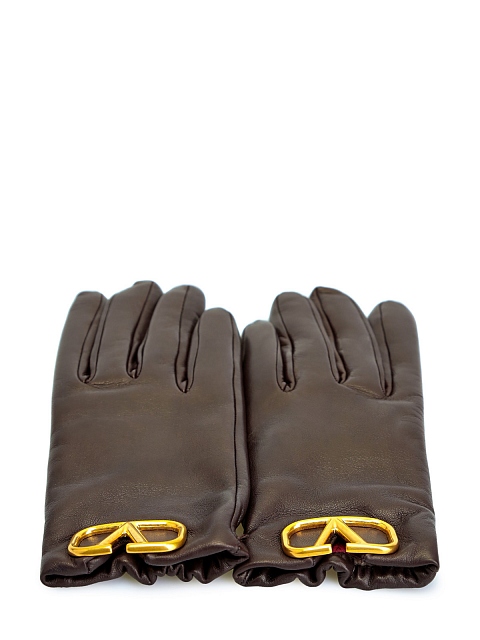 Женские перчатки от Valentino созданы из тонкой кожи наппа в кофейном оттенке. Литые пряжки VLogo Signature оттенка античной латуни подчеркивают присущий Модному дому шик. Подкладка из теплого кашемира надежно защищает от низких температур. Сделано в Италии.