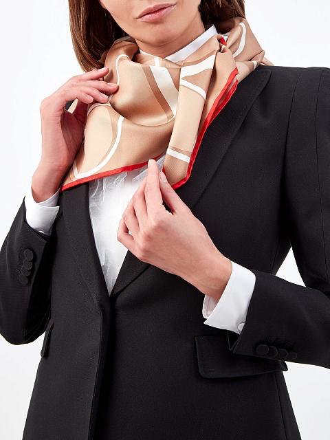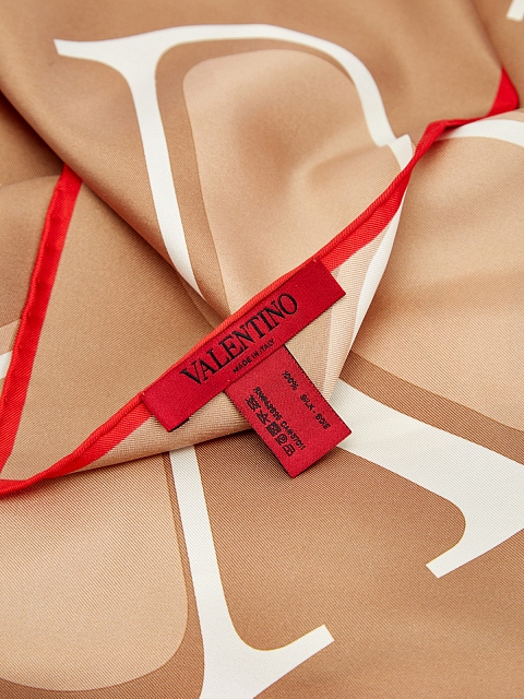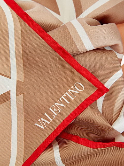 Платок от Valentino Garavani выполнен из натурального шелкового твила. Глянцевая атласная текстура образует эстетичные драпировки, края с алым кантом обработаны выполненным вручную швом. Бежево-белая база с фирменным принтом делает аксессуар максимально универсальным. Сделано в Италии.