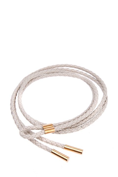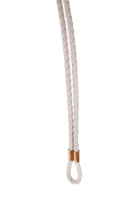 Тонкий пояс из плетенных кожаных шнурков с металлическими деталями