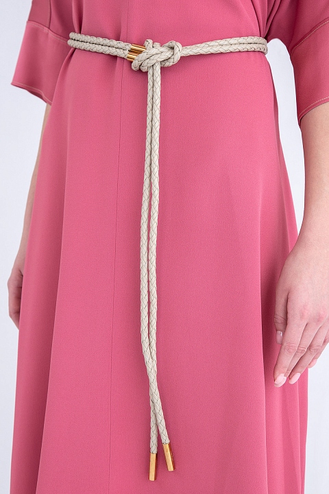 Женский кожаный пояс из весенне-летней коллекции Agnona выполнен из кожи в бежевом оттенке с эффектом плетения и дополнен металлической фурнитурой с золотистым покрытием. Аксессуар продевается в петлю, образуя изящный узел. Сделано в Италии.