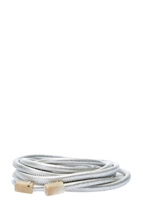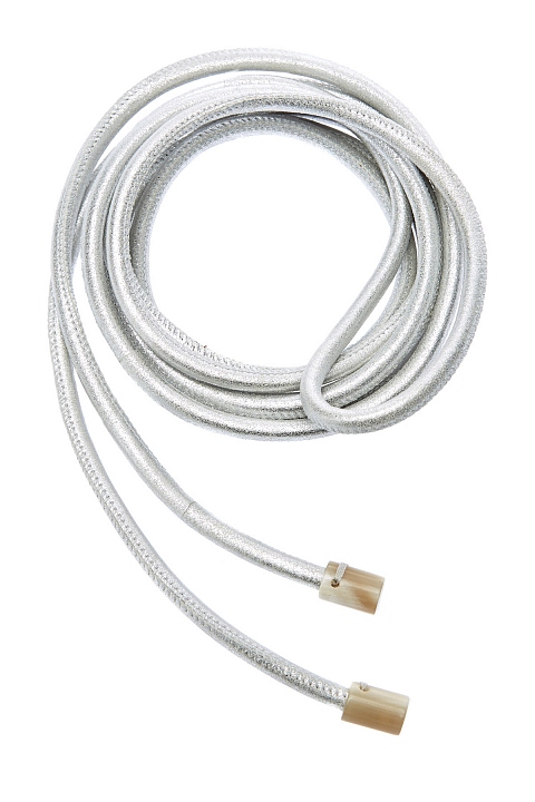 Тонкий пояс от Lorena Antoniazzi создан из матовой кожи с напылением серебристого оттенка. Ограничители с эффектом полированного дерева гармонично дополняют аксессуар. Лаконичный дизайн и универсальная длина позволяют создавать необходимые акценты в любом образе. Сделано в Италии.