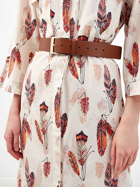 Классический женский ремень в коричневом цвете от Re Vera выполнен из матовой телячьей кожи с плотной текстурой, которая обеспечивает долговечность изделия. Литая пряжка с напылением оттенка античной латуни придает образу штрих в стиле ретро.