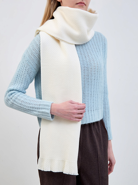 Однотонный шарф из тонкой шерстяной пряжи с длинной бахромой
