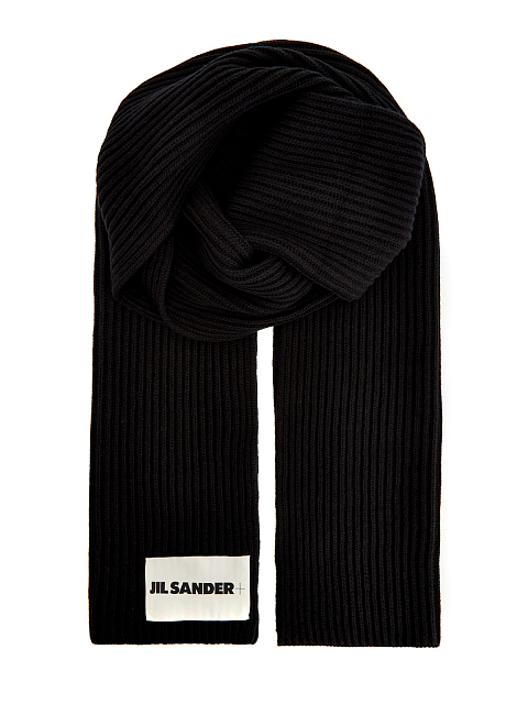 Объемный шарф из шерсти с контрастной нашивкой