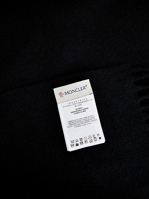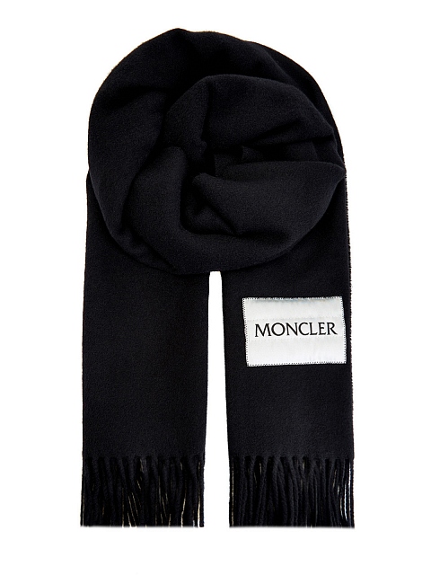Стильный женский шарф в черном цвете от Moncler идеально сочетается как с пальто, так и с пуховиками. Аксессуар из мягкой натуральной шерсти дополнен длинной бахромой по кромкам. Узнаваемая этикетка с жаккардовым логотипом Moncler становится изысканным финальным штрихом.