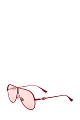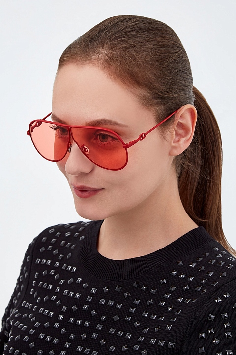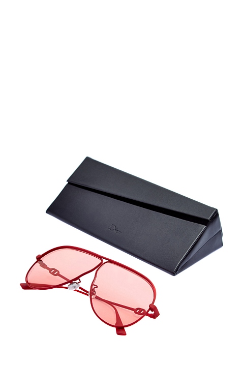 Яркие очки DiorCamp от Dior крупной формы авиатор. Аксессуар в насыщенном алом оттенке сочетает матовую тонкую оправу с прорезиненным эффектом и цветные прозрачные стекла, создавая эффект colorblock. Дужки дополнены литым декором в фирменном стиле. Линзы обеспечивают 100% защиту от UV-лучей.