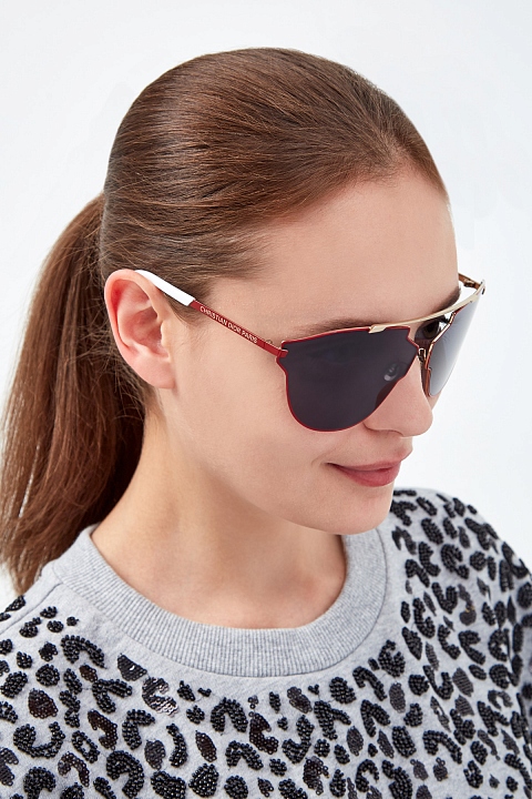 Женские солнцезащитные очки Dior «So Real Fast» с деструктурированной оправой «pantos» в оттенке ягодного вина. Графичный мост золотистого цвета органично дополнен тонкими дужками из легкого металла с контрастными наконечниками. Синие стекла обеспечивают 100% защиту от ультрафиолетовых лучей. Изделие предоставляется в фирменном чехле.