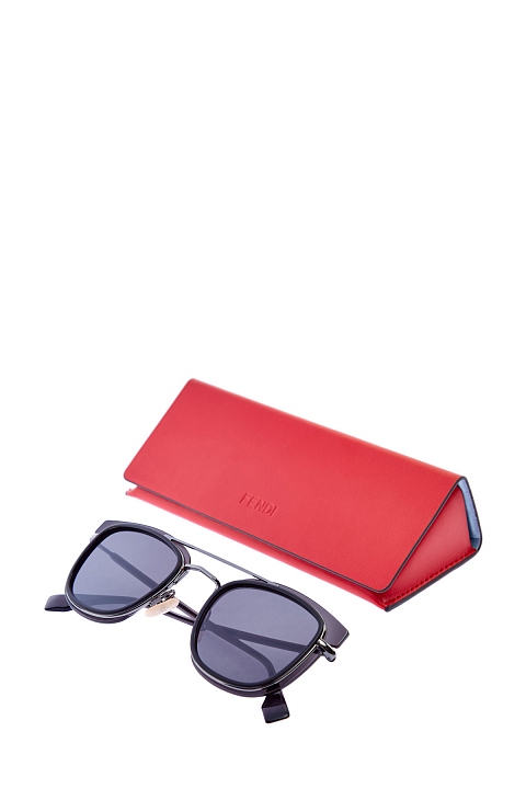 Солнцезащитные очки квадратной формы от Fendi выполнены в темной гамме. Трехслойная оправа сочетает тонкий металл и полупрозрачный ацетатный пластик. Архитектура подчеркнута тонким двойным мостом. Темные линзы обеспечивают 100% защиту от UV-лучей. Аксессуар предоставляется в фирменном чехле.