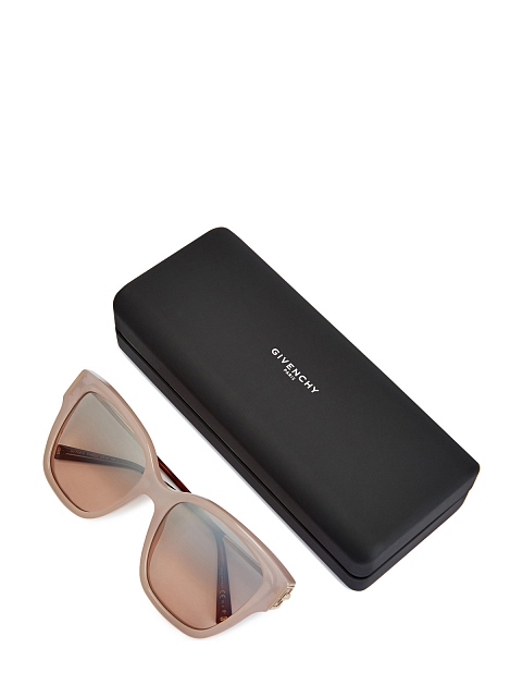Солнцезащитные очки от Givenchy выполнены из полупрозрачного ацетатного пластика, элегантный дизайн подчеркнут дужками из золотистого металла с литым логотипом Модного дома и контрастными наконечниками. Затемненные линзы с легким градиентным переходом обеспечивают 100% защиту от UV-лучей. Аксессуар предоставляется в фирменном чехле.