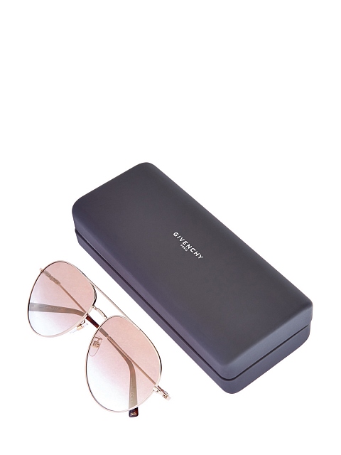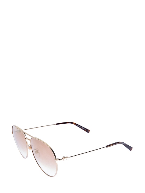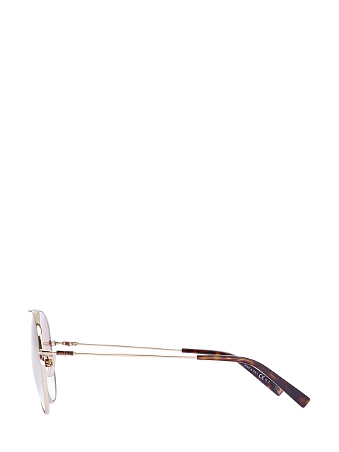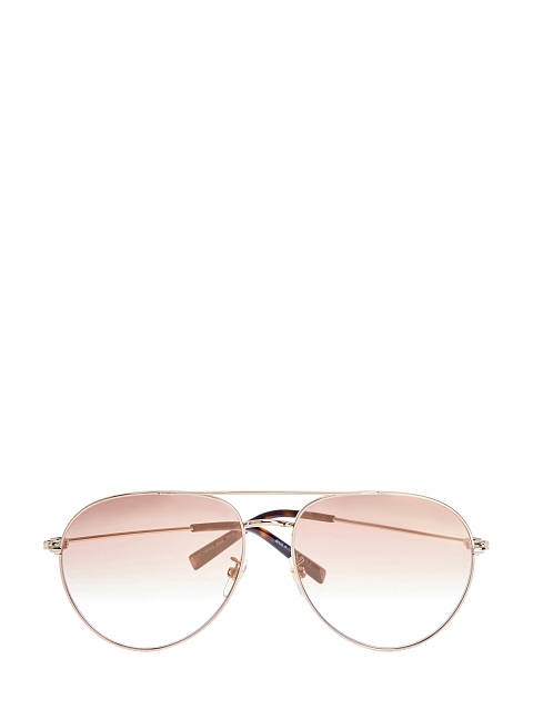 Элегантные очки-авиаторы от Givenchy с оправой из металла оттенка золота. Двойной мост подчеркивает классическую форму модели, тонкие дужки оформлены контрастными черепаховыми наконечниками из гладкого ацетата. Затемненные линзы в персиковых тонах обеспечивают 100% защиту от UV-лучей. Фирменный чехол предоставляется в комплекте.