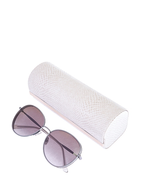 Элегантные очки Felines от Jimmy Choo выполнены из легкого сплава. Тонкая оправа с серебристым напылением дополнена изящными литыми дужками с наконечниками из ацетата. Линзы с хрустальным мерцающим напылением по бокам и градиентным покрытием обеспечивают 100% защиту от UV-лучей. Аксессуар предоставляется в фирменном чехле.
