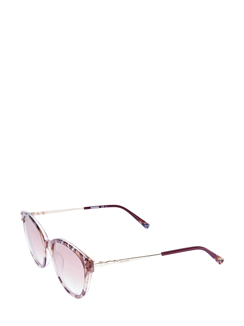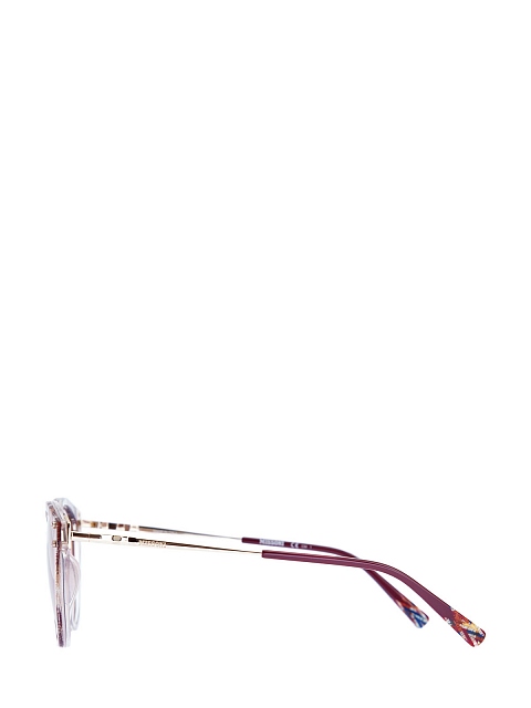 Солнцезащитные очки от Missoni выполнены из легкого ацетатного пластика с фирменным принтом. Двухслойная оправа «кошачий глаз» с прозрачной внутренней частью дополнена золотистой фурнитурой и тонкими дужками из металла. Узор в полоску-зигзаг запаян внутрь наконечников. Затемненные линзы обеспечивают 100% защиту от UVA и UVB. Фирменный чехол предоставляется в комплекте. Сделано в Италии.