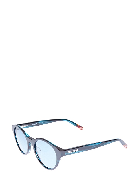 Стильные женские очки от Missoni выполнены из легкого ацетатного пластика. Двухслойная оправа с внутренним узором в синих тонах дополнена изогнутыми дужками с логотипом бренда. Фирменный принт в полоску-зигзаг запаян внутрь наконечников. Затемненные линзы обеспечивают 100% защиту от UVA и UVB. Чехол предоставляется в комплекте. Сделано в Италии.