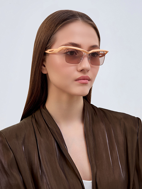Солнцезащитные очки с безободковыми линзами и фигурной оправой