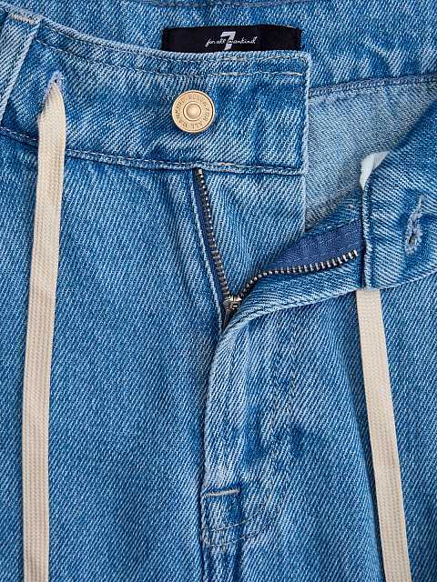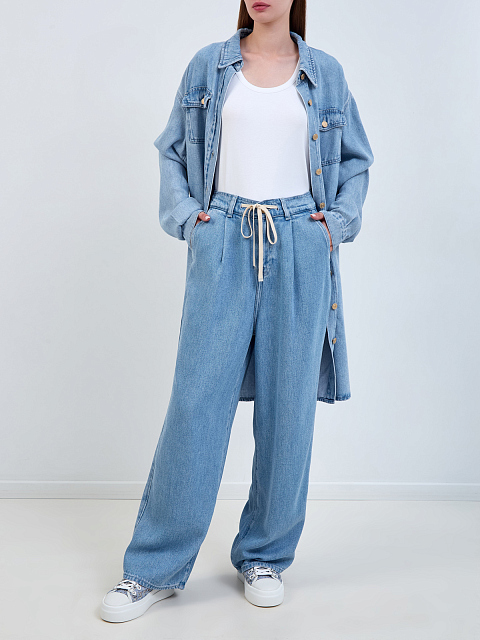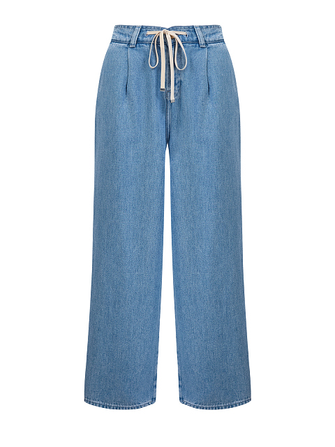 Свободные джинсы из легкого выбеленного денима с кулиской