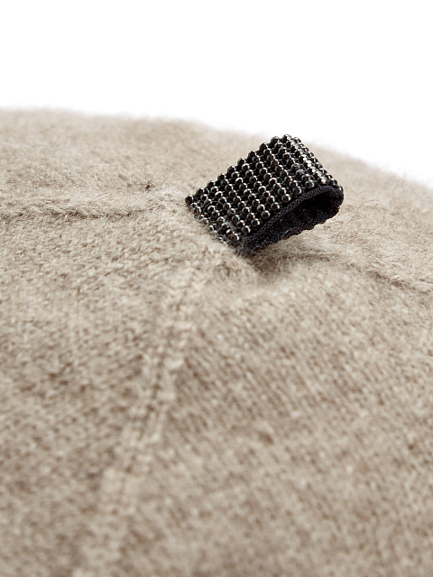 Элегантный берет ручной работы от Brunello Cucinelli. Для создания модели была выбрана ценная натуральная шерсть — за счет особого строения волокон аксессуар надежно сохраняет тепло и обеспечивает идеальную посадку. Изящная вышивка рядами ювелирной цепочки Мониль придает головному убору нежное, очень женственное сияние. Сделано в Италии.