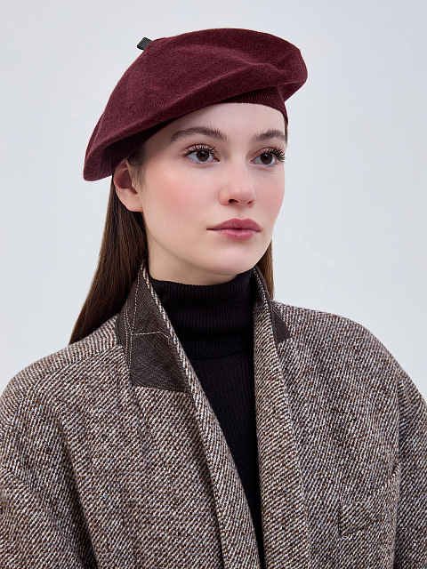 Шерстяной берет в оттенке бургунди с деталью Мониль