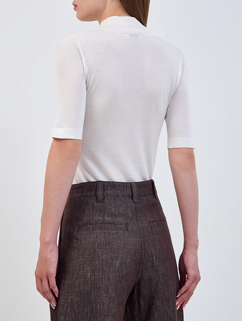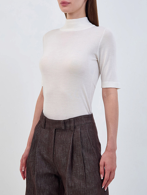 Женская водолазка из кашемира и шелка с укороченными рукавами BRUNELLO_CUCINELLI купить за 111 840 руб.