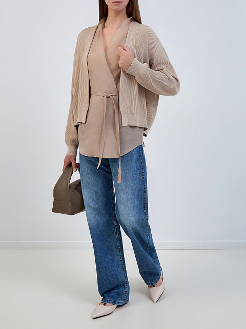Кардиган Layered из трикотажа и органзы с цепочкой Мониль