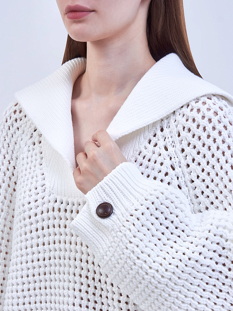 Джемпер из хлопковой пряжи с V-образным вырезом и воротом