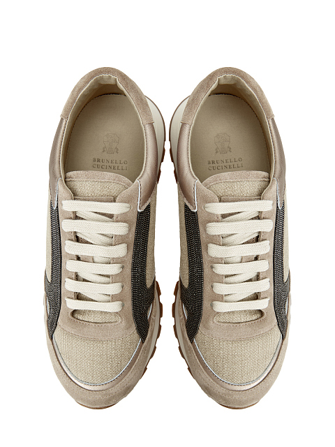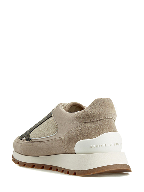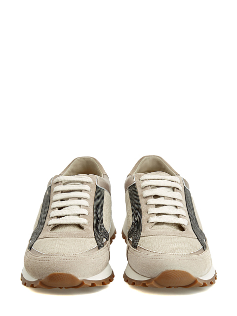 Женские комбинированные кроссовки из замши и канваса с окантовкой мониль BRUNELLO_CUCINELLI купить за 138 950 руб.