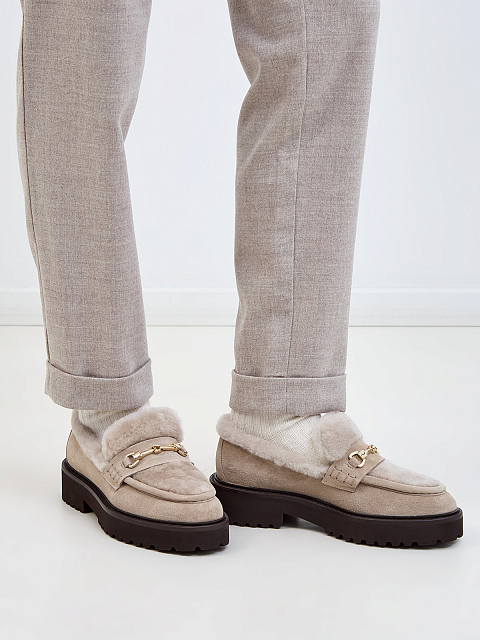 Женские замшевые лоферы с отделкой из овчины и литой пряжкой DOUCALS_W купить за 41 860 руб.