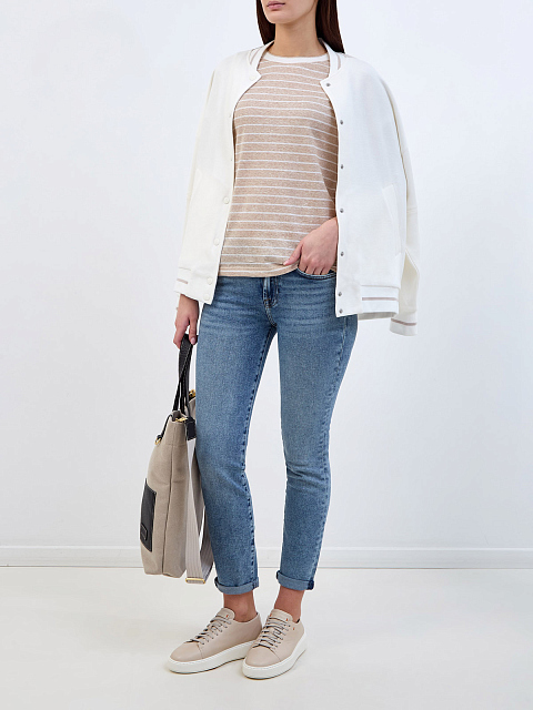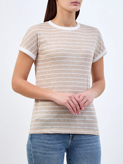 Футболка из меланжевого льна и хлопка с узором в полоску