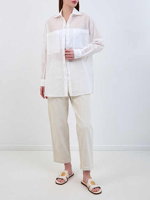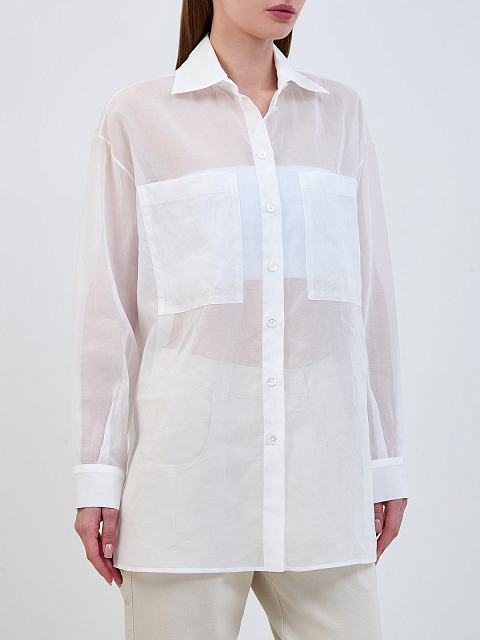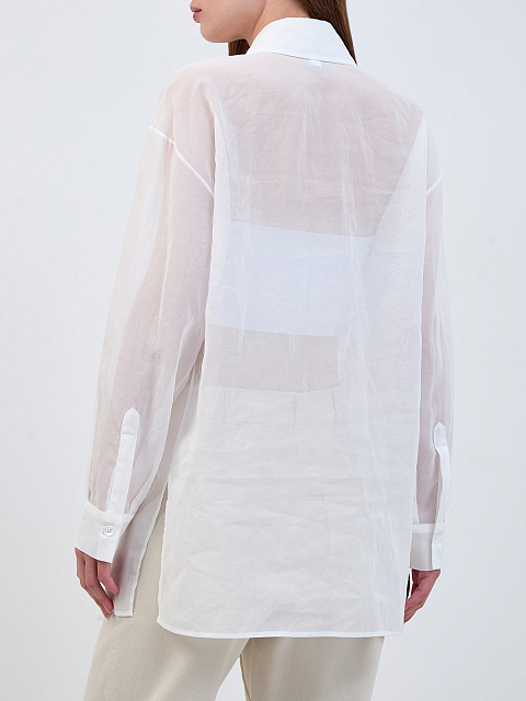 Свободная рубашка из полупрозрачного хлопка с разрезами