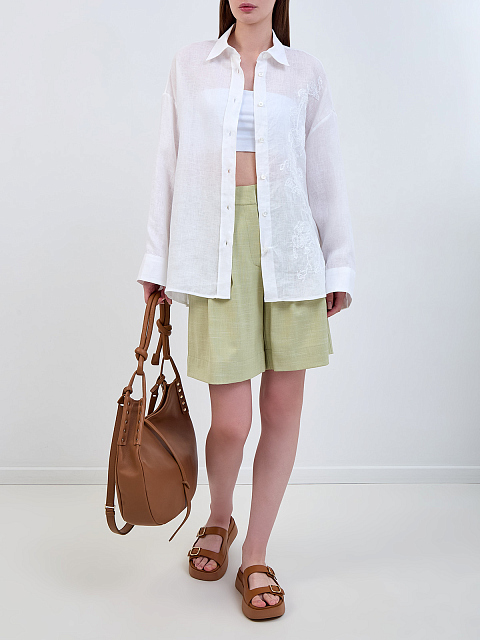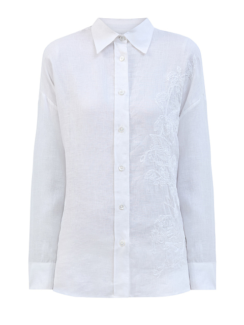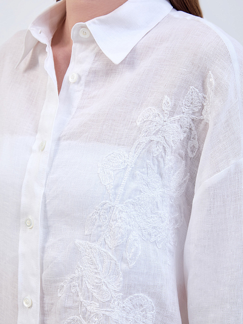 Легкая льняная рубашка с вышитым узором в тон