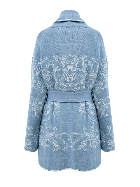 Кашемировый кардиган с вязаным узором и поясом в тон