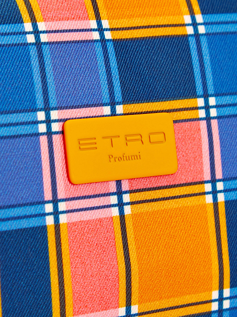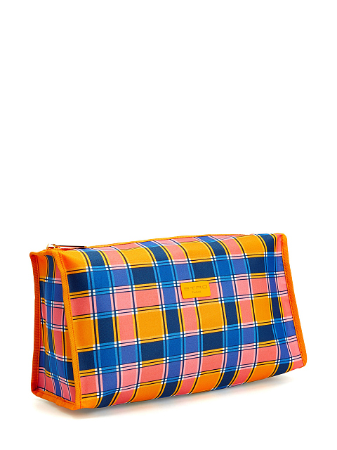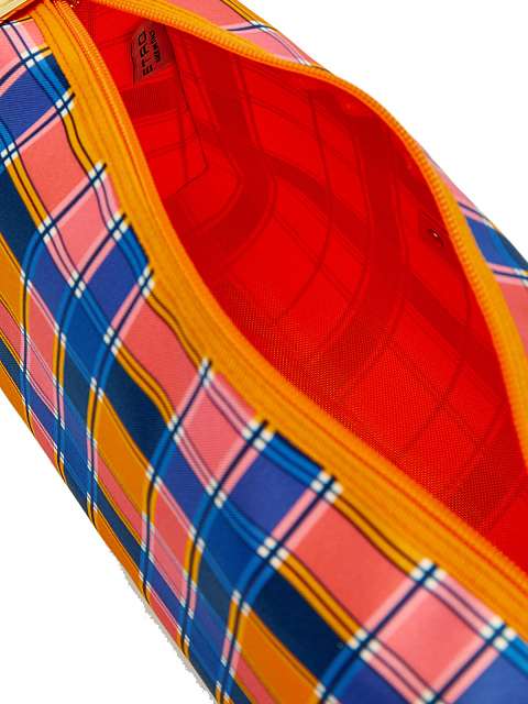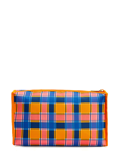 Текстильная косметичка с принтом в клетку и фирменным патчем