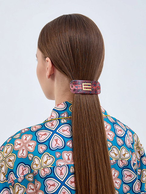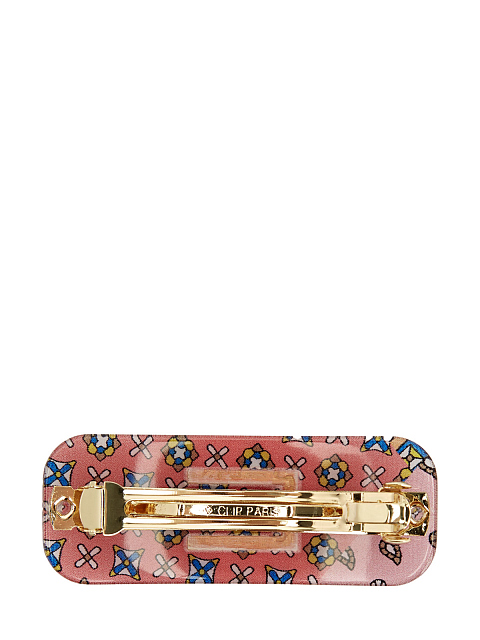 Заколка из легкого ацетата с запаянным принтом и эмблемой