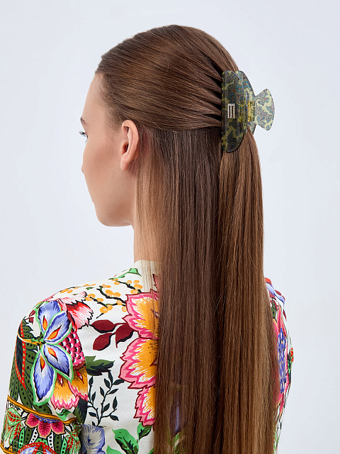 Заколка-краб с запаянным принтом пейсли и логотипом