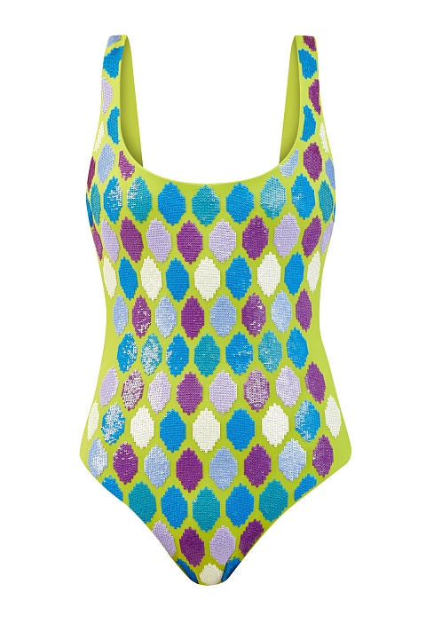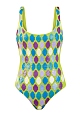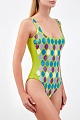 Слитный купальник из двухслойного материала с ярким геометрическим декором