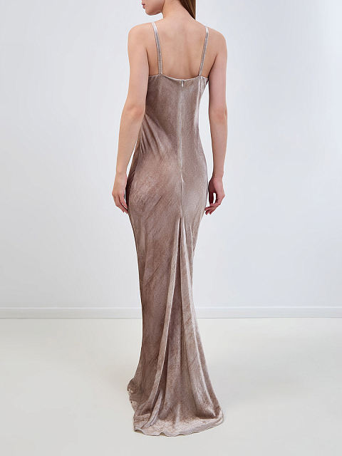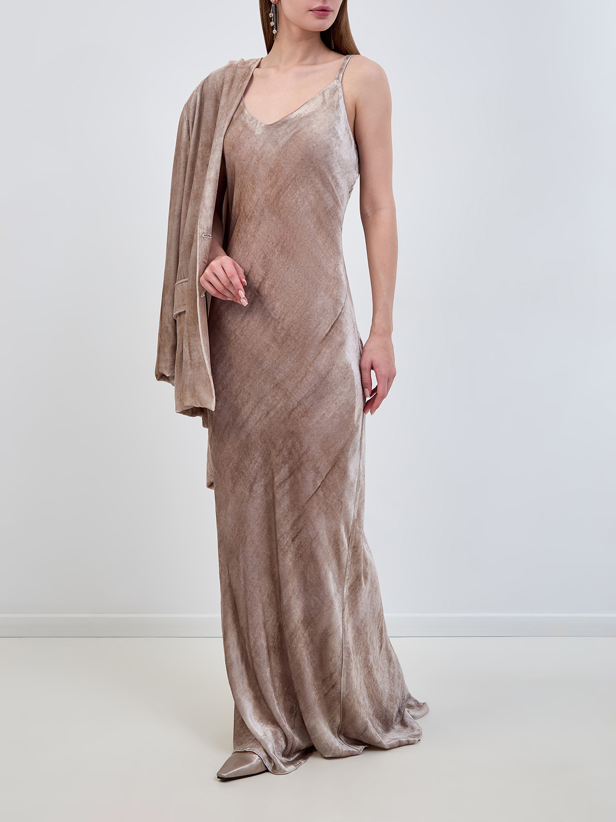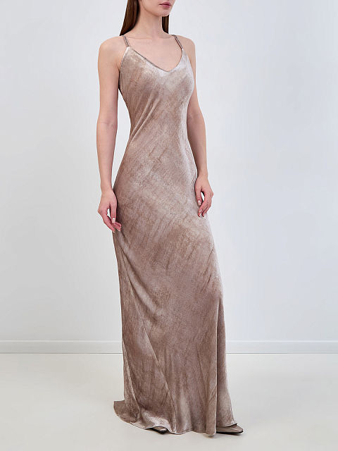 Платье из вискозного велюра и шелка с тонкими бретелями